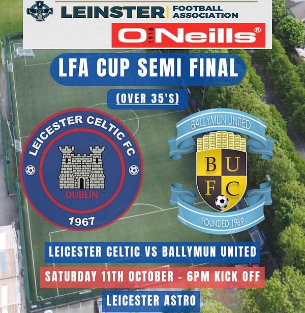 Our Over 35’s are playing against Ballymun United in the LFA Cup Semi-Final on Saturday evening on our astro at 6:00PM. It would be wonderful to get as much support as possible for the team.