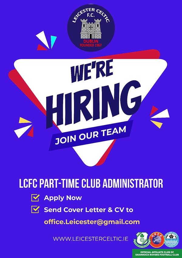 Leicester Celtic is seeking to appoint a Part-Time Club Administrator to support the effective day-to-day administration and organisation of our large grassroots football club, which currently consists of 70 teams. The successful candidate will work closely with the Chairperson, Treasurer and Club Secretary and will play a key role in ensuring the smooth operation of the Club.