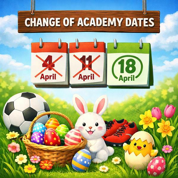 There will be no academy on Saturday 4th April or Saturday 11th April.